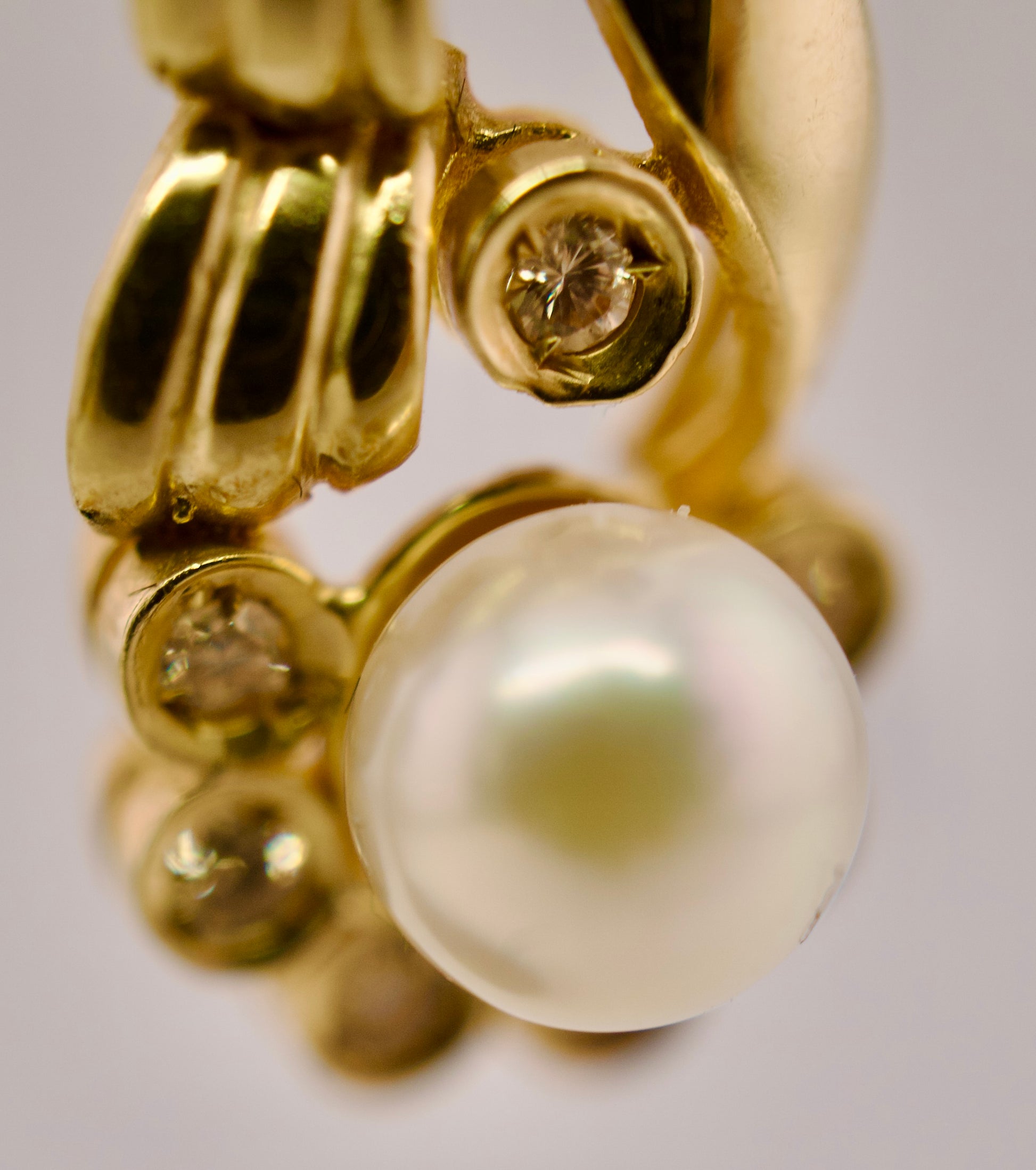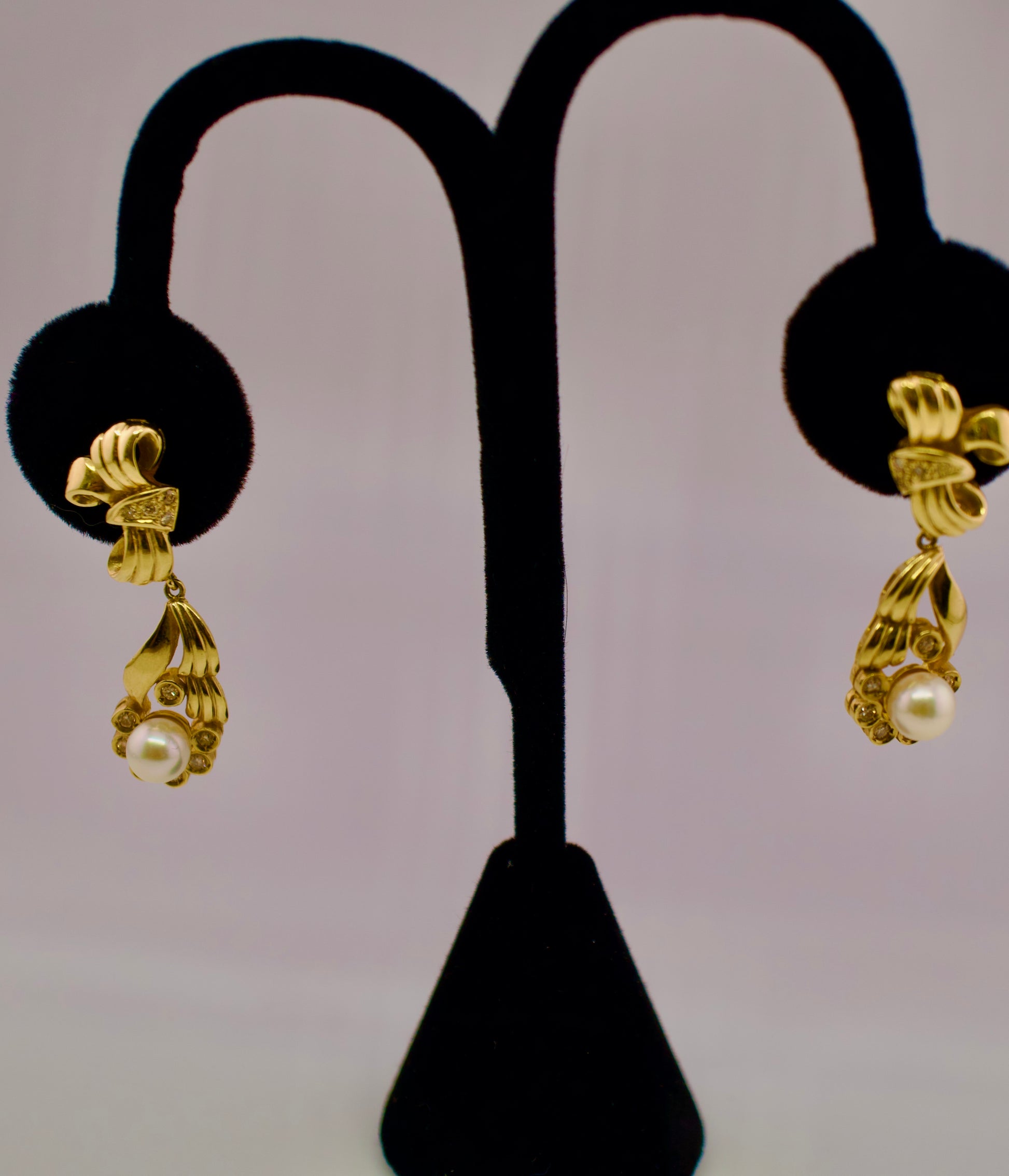 These elegant dangle earrings combine the lustrous beauty of cultured pearls with the brilliance of diamonds, all set in 14kt yellow gold. The pearls' soft iridescence pairs perfectly with sparkling diamonds, creating a refined aesthetic that works for both everyday elegance and formal occasions. Yellow gold's warm tone enhances the natural glow of the pearls while amplifying diamond sparkle. The dangling design adds graceful movement and dimension to your look. A timeless investment piece that brings sophistication to any wardrobe.