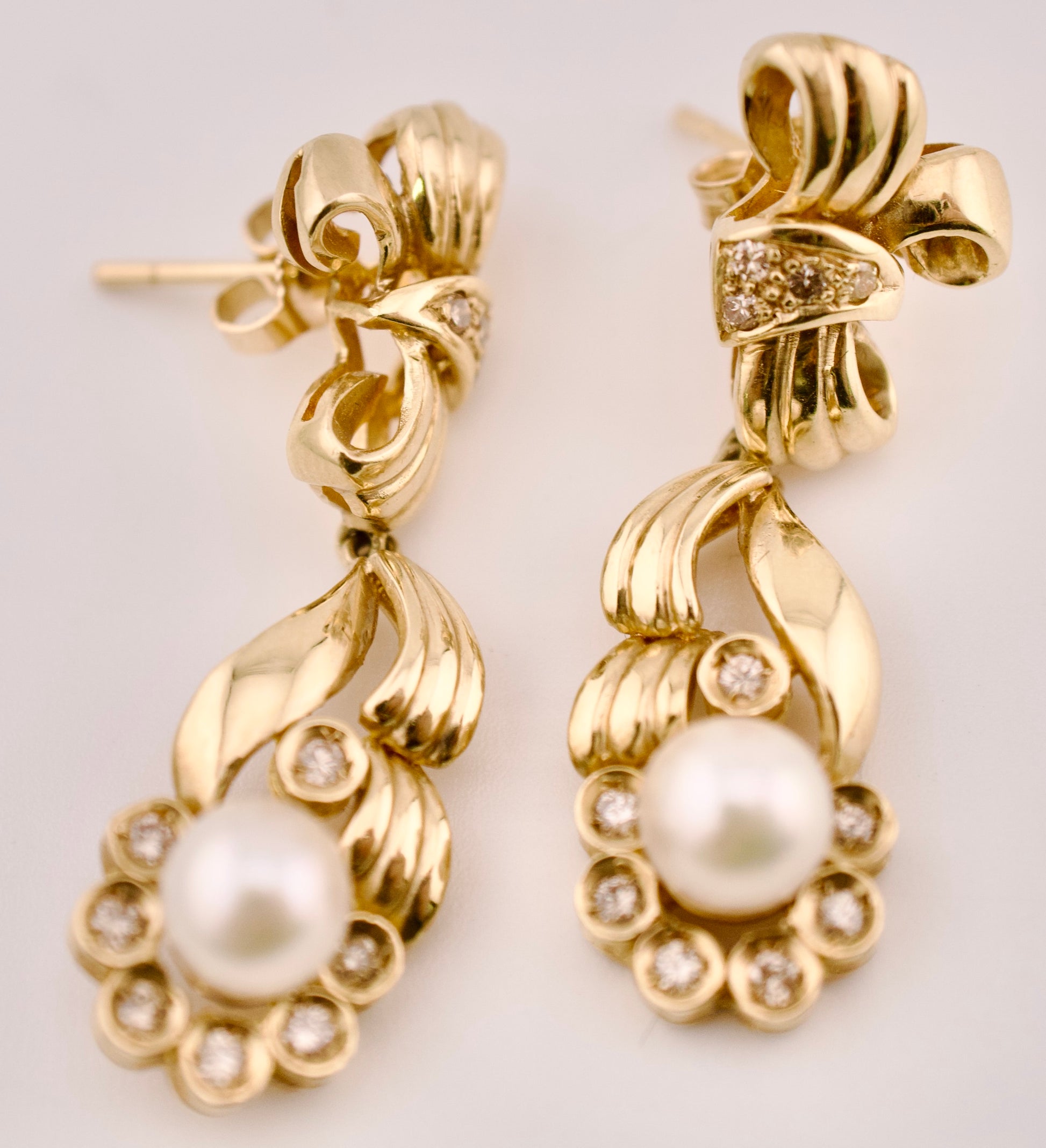 Charming Cultured Pearl and Diamond Dangles in 14kt Yellow Gold